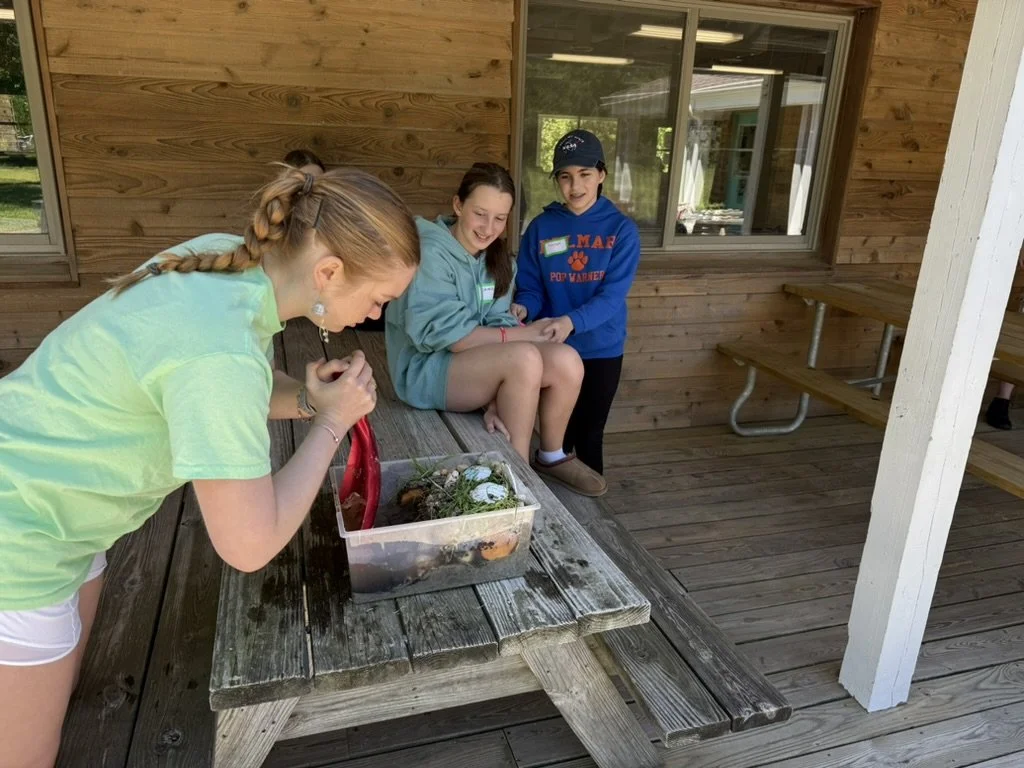 Another easy choice was incorporating living shorelines. Many of our volunteers work on the restoration of Poplar Island or study submerged aquatic vegetation (SAVs). Students built miniature beaches to demonstrate how green structures can reduce erosion, then discussed how human populations impact land and water. These tangible models helped connect scientific theory to real-world environmental challenges.